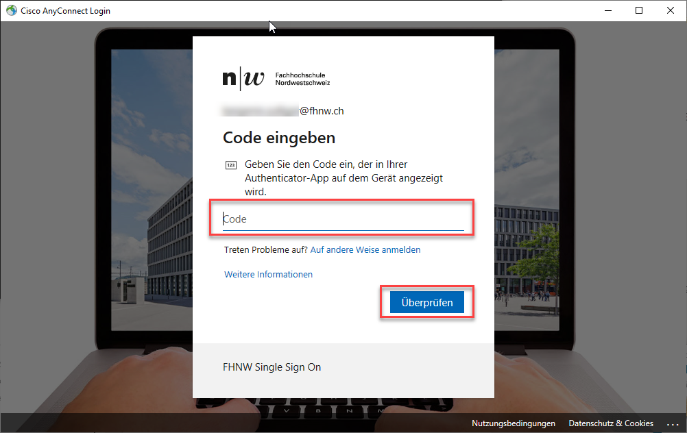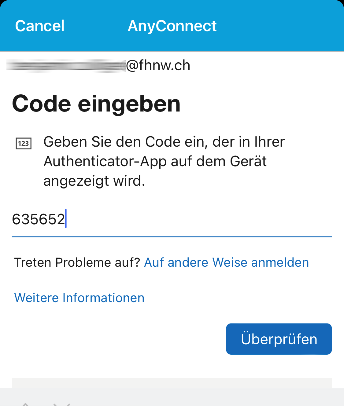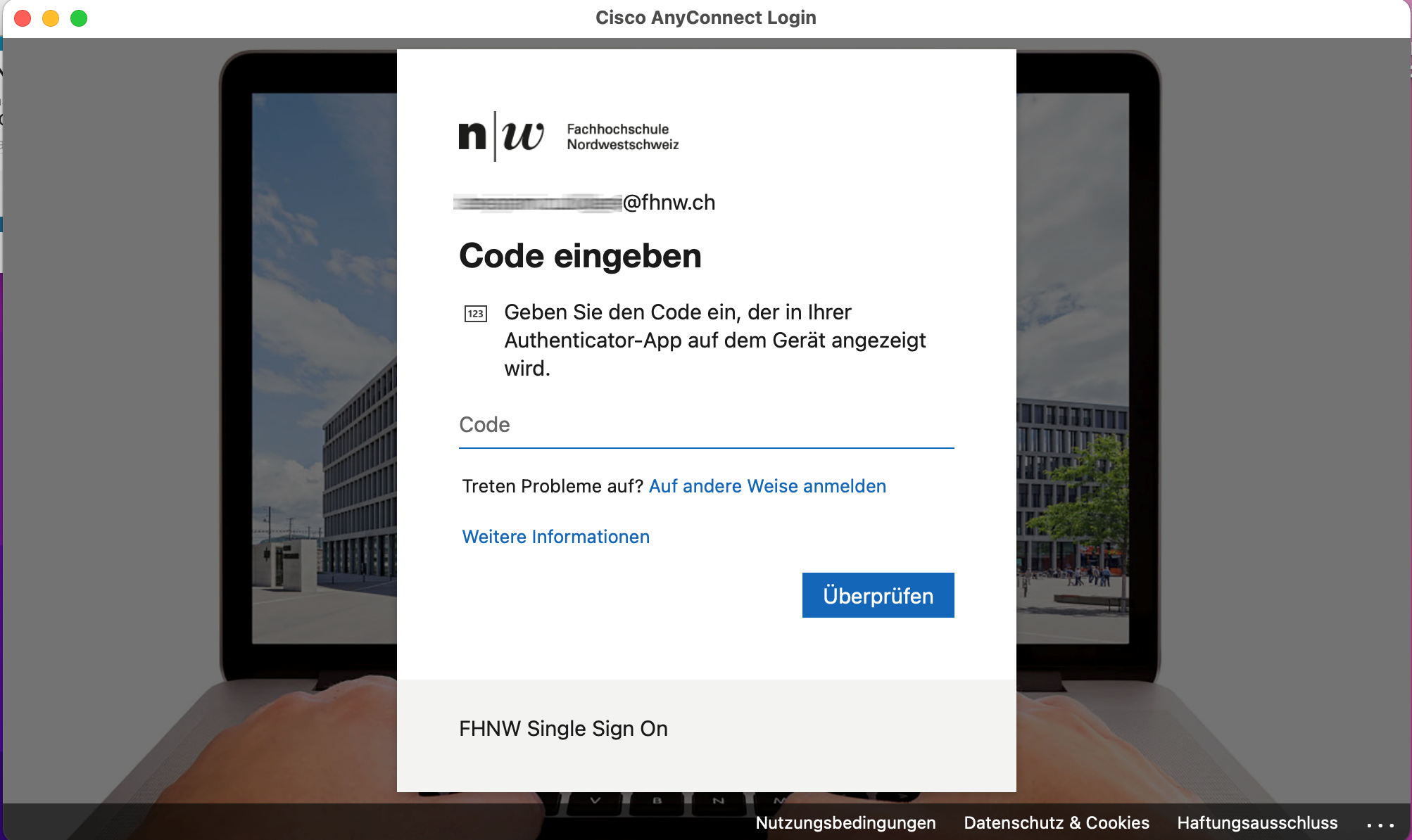 Per 14.2.2022 wird für VPN Verbindungen eine sichere Multifaktor-Authentifizierung eingeführt. Dies führt zu höherer Sicherheit für die FHNW Infrastruktur. Es wird die bereits bekannte Authentifizierung von Microsoft verwendet, damit die UserInnen nicht einen weiteren MFA Registrierungsprozess durchlaufen müssen.