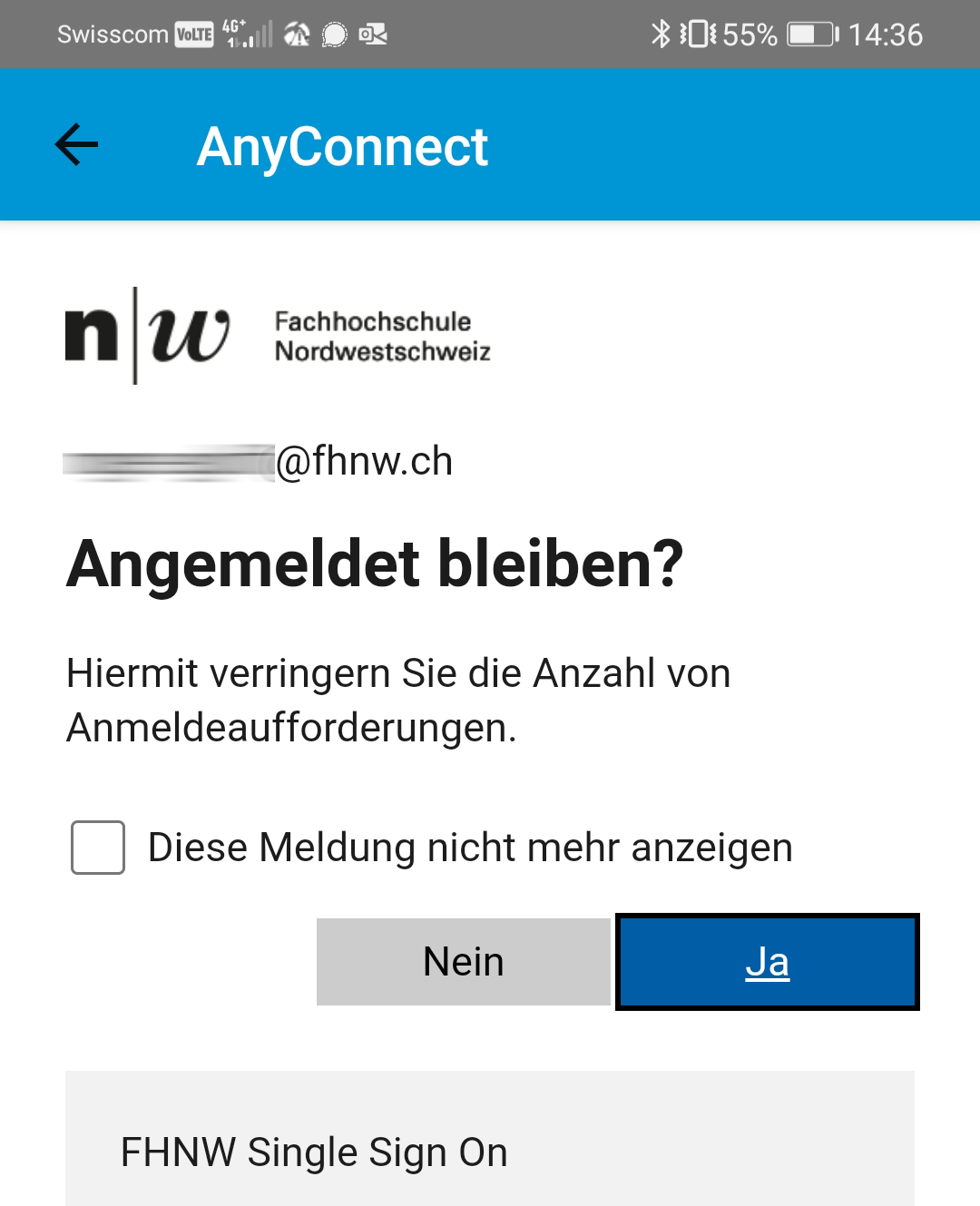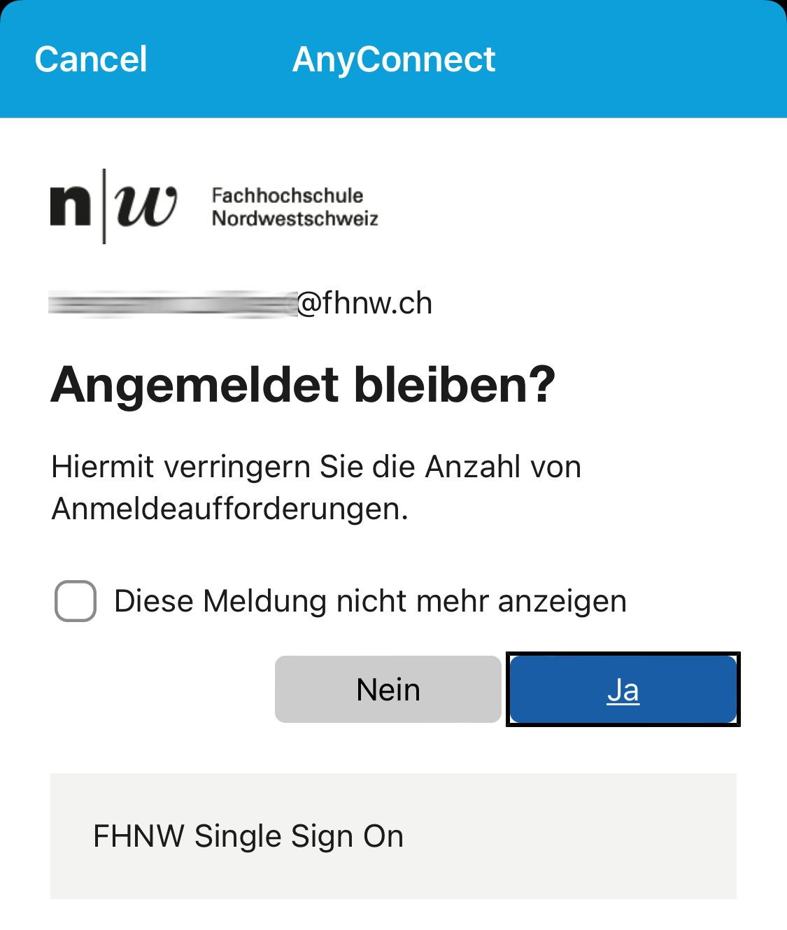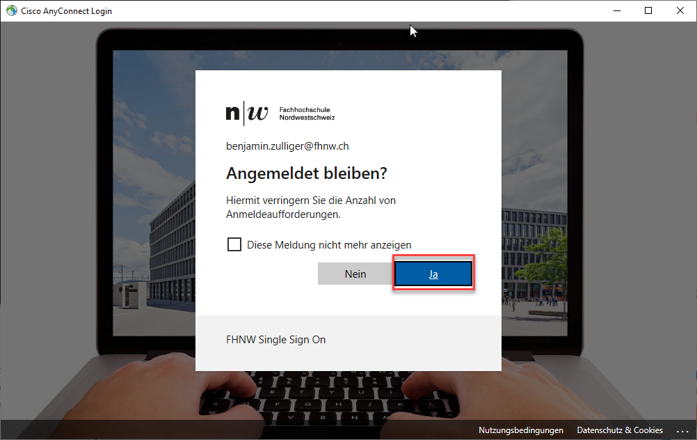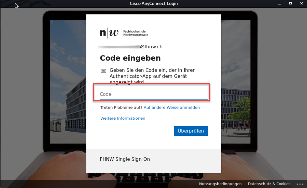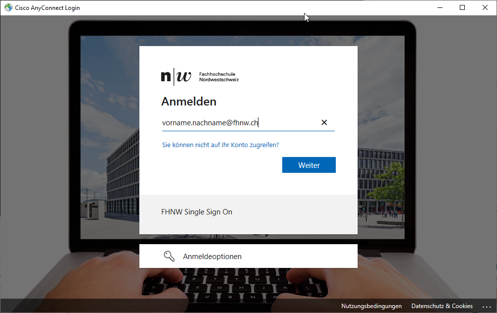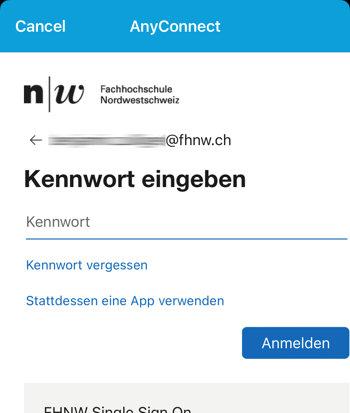 Grund: Cisco Secure Client ist so konfiguriert dass er die bestehende Azure Anmeldung verwendet. Bei nicht FHNW Geräten kann es sein dass er den falschen Account nimmt und man gar keine Möglichkeit hat dies zu ändern.