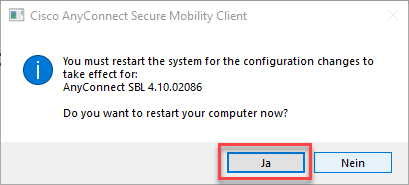 9. Bestätigen Sie die Abfrage mit "Ja". ACHTUNG! Zurzeit hat dieser Dialog keinen weiteren Einfluss auf zukünftige Anmeldungen.