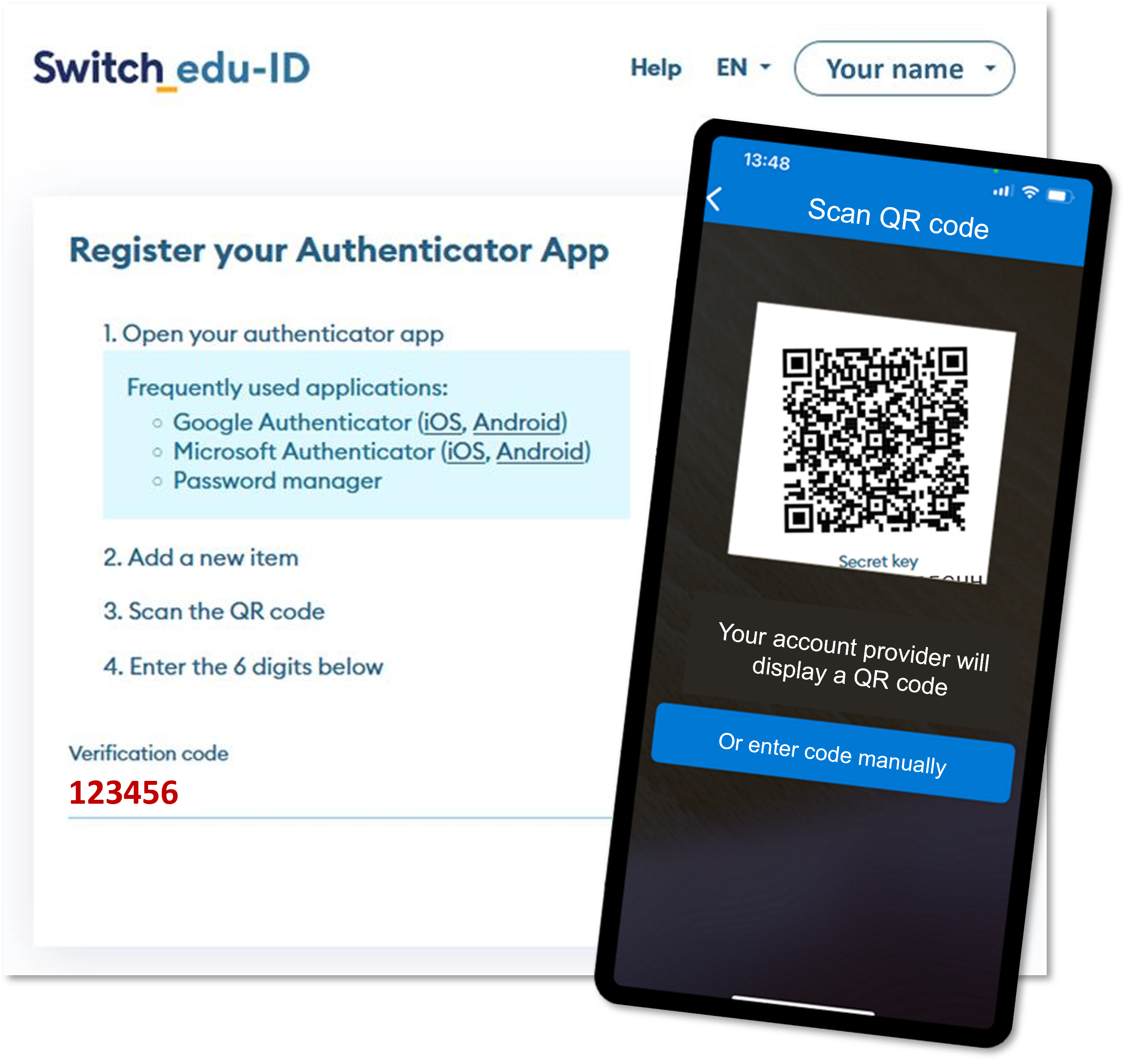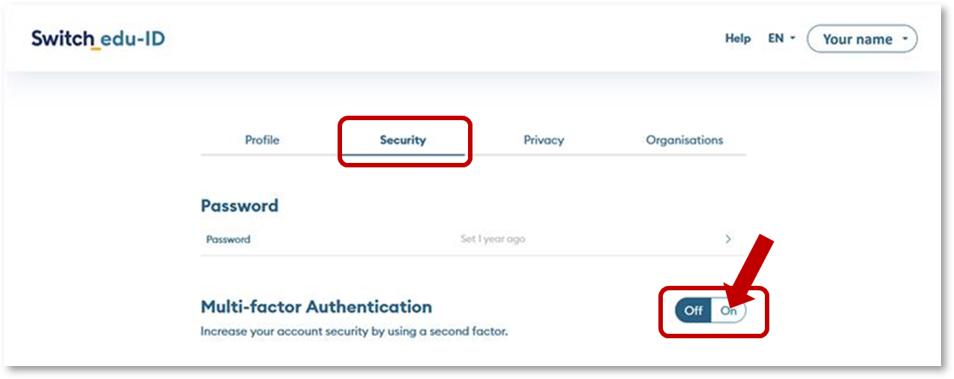 Please activate multi-factor authentication in your SWITCH edu-ID by following the steps below.
