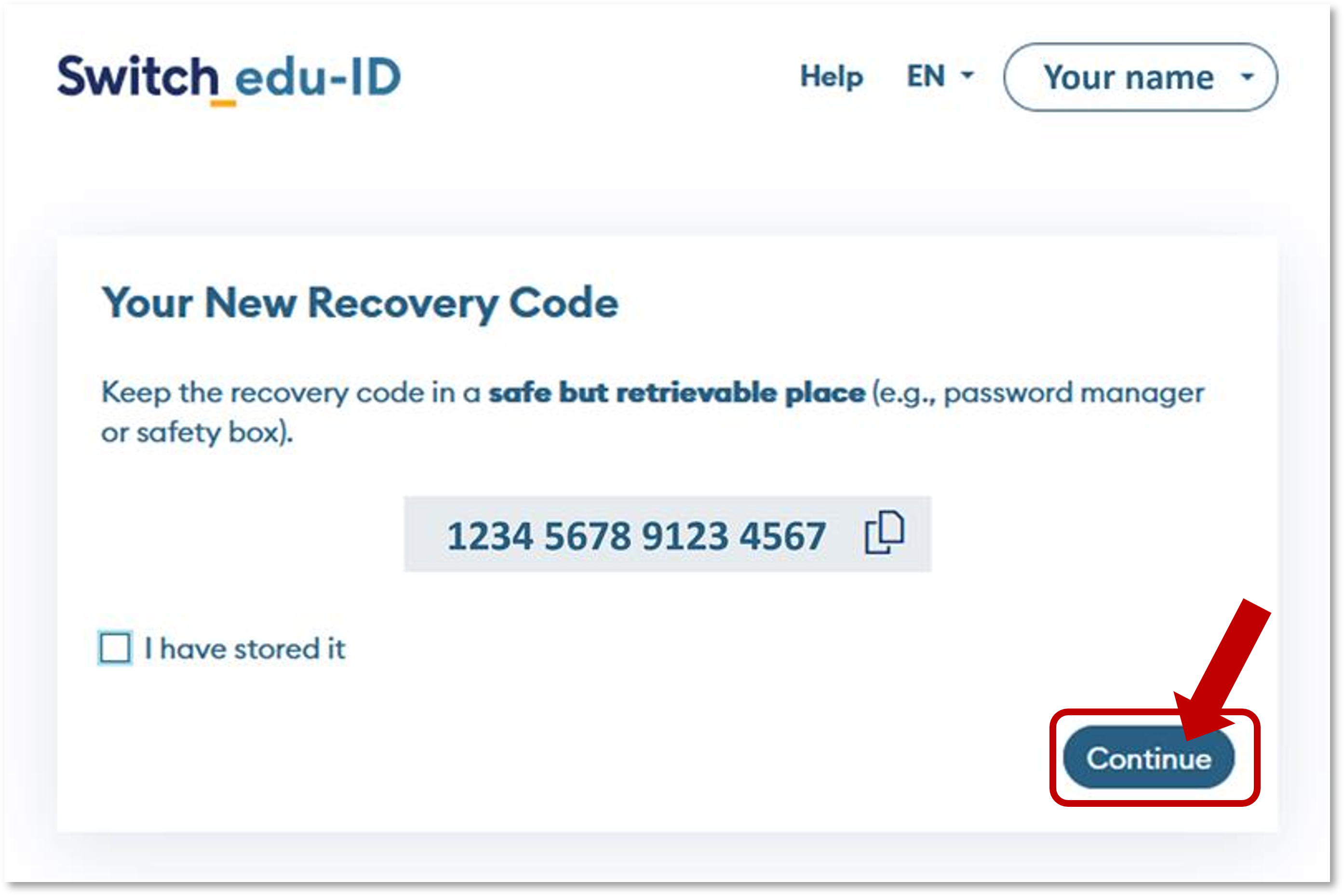 Enter the 6-digit verification code displayed in the app for your SWITCH edu-ID.